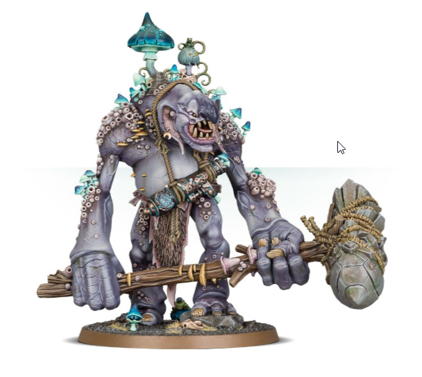 Dankhold Troggbosses are ancient creatures that sometimes wake from their subterranean slumbers and go on the rampage. Potent forces of destruction in their own right, Troggbosses also inspire any Gloomspite Gitz fighting in their shadow.