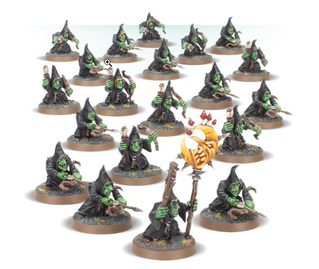 Moonclan Shootas gather in sizeable skulkmobs that rain black-fletched arrows upon the enemy. They pincushion their victims with sheer weight of fire, before surrounding any survivors and stabbing them viciously to death.