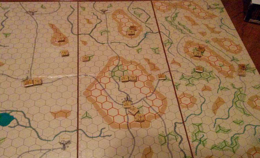The game is tactical scale (company/platoon sized units) with geomorphic map boards. The 352 counters are 5/8' and were very striking for their time.