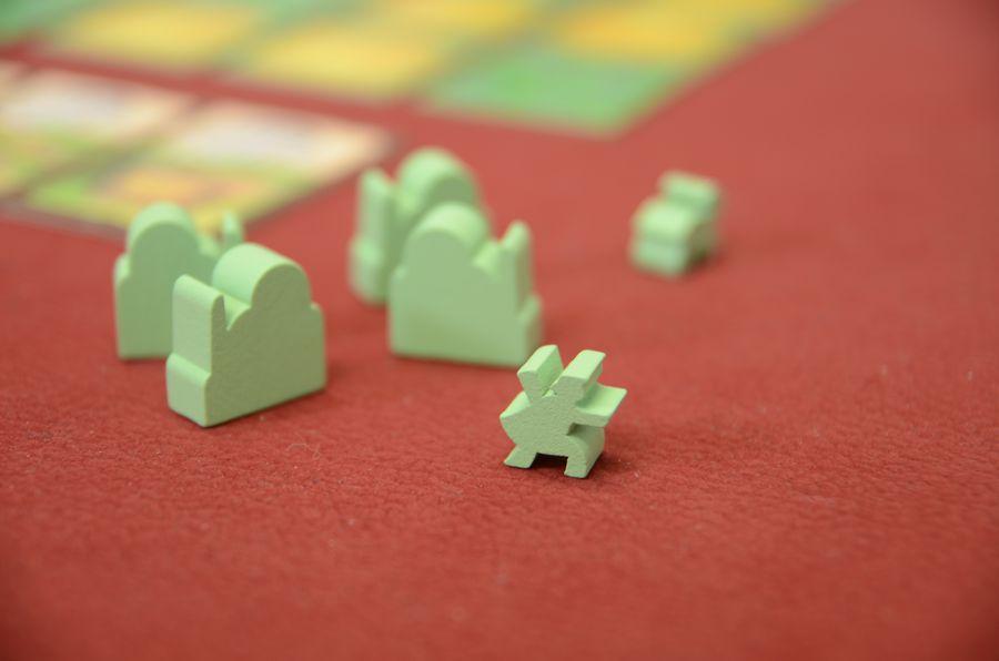 Silk is a gateway game into area control and worker placement systems. Players have to move their silkworms to the optimal spaces so they can feed on the best grass available, while pushing the other players' pieces into less desirable feeding grounds. In this game, players roll dice in order to determine which actions they are allowed to perform during their turn. There are six types of actions available: breeding more silkworms, moving the shepherd or their mastiff, building fences or farms, moving the ookami monster around the board, and — most importantly — getting your silkworms to feed. When silkworms feed, they generate a number of silk points, depending on the type of terrain they are standing on at that moment. These points can be used to modify the outcome of a dice roll, all while keeping in mind that the player with the most silk points at the end of the game wins!