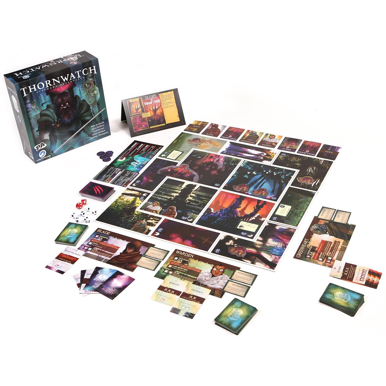 The Thornwatch players each have decks of cards which give them skills and actions, as well as playmats and trait cards to show their unique outlook on the world. They roll custom dice including hero dice gained by manifesting their traits. Each session Thornwatch players have an opportunity to gain knots, which grant their wearer a bonus, regardless of which Thornwatch they choose to manifest in a particular session.