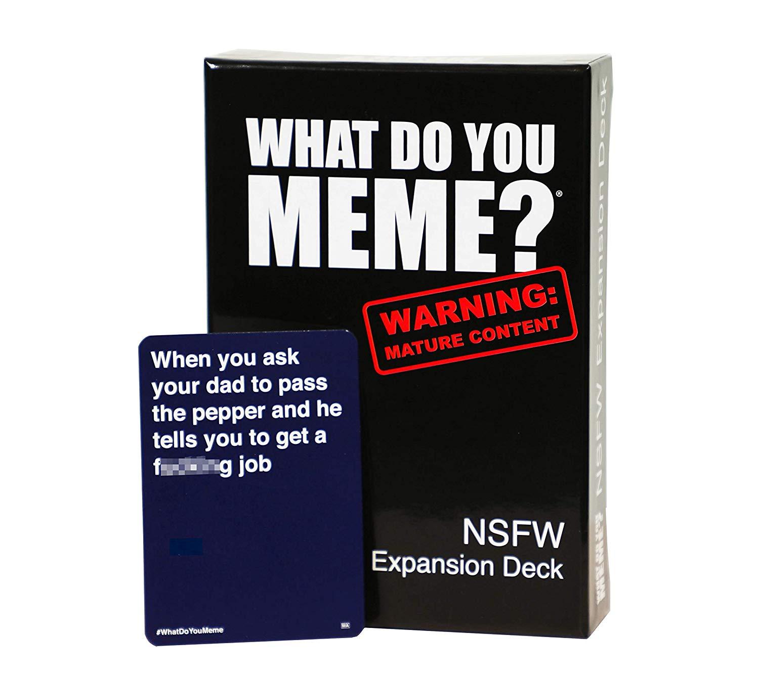 You've asked for it - and we delivered! The new "NSFW" expansion pack by What Do You Meme? Includes 90 new hilariously naughty cards to be combined into your existing What Do You Meme? Game.