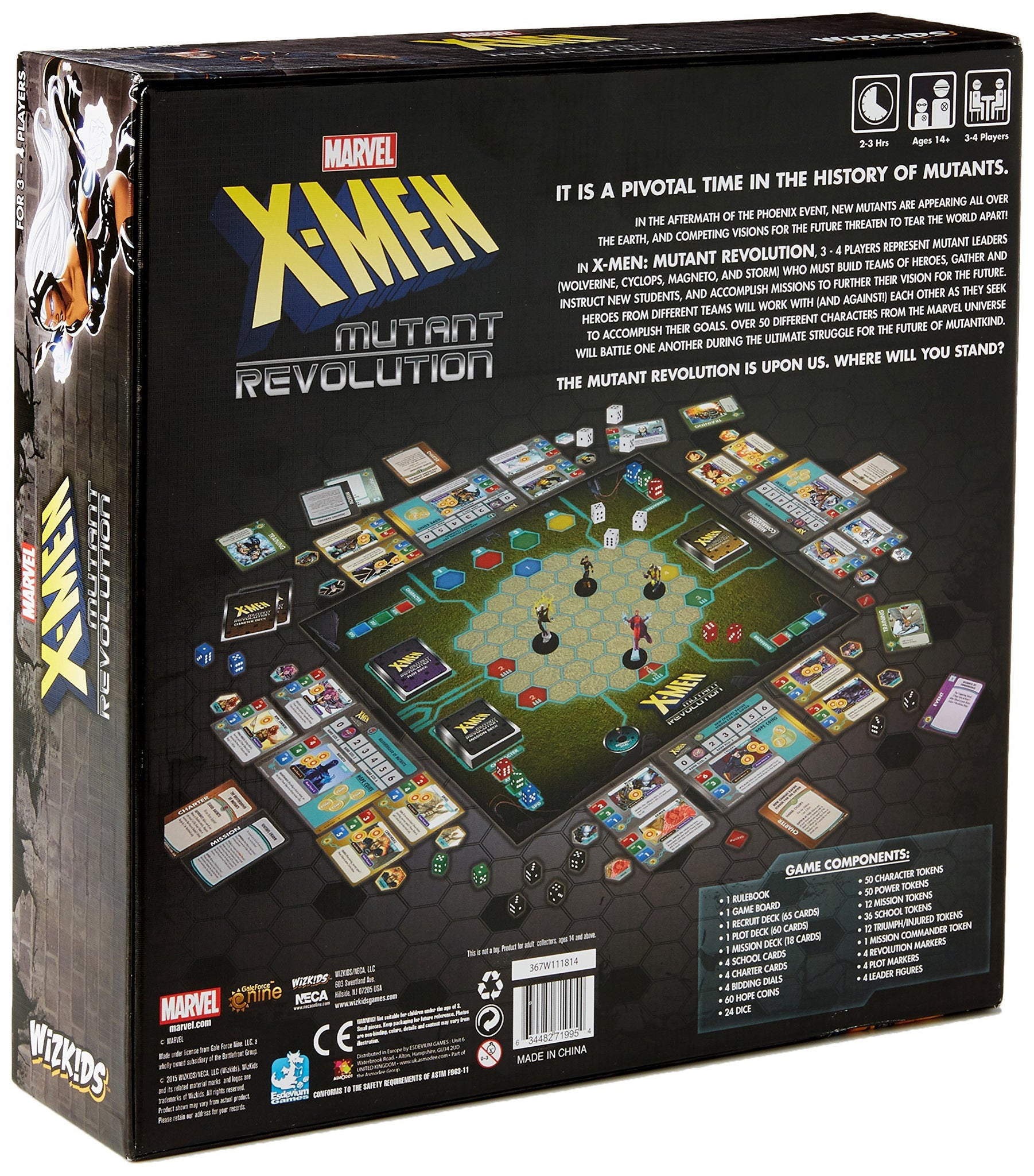 X-Men: Mutant Revolution is a head-to-head battle for the future of mutantkind in which 3-4 players play as Wolverine, Cyclops, Magneto, or Storm, leading their individual schools with unique powers and abilities and recruiting heroes and students in order to train them and send them on missions to spread their vision for mutants to the world.